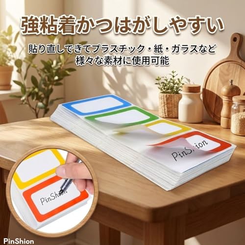 PinShion 名前ラベル 手書きステッカー 防水 分類用 200枚入